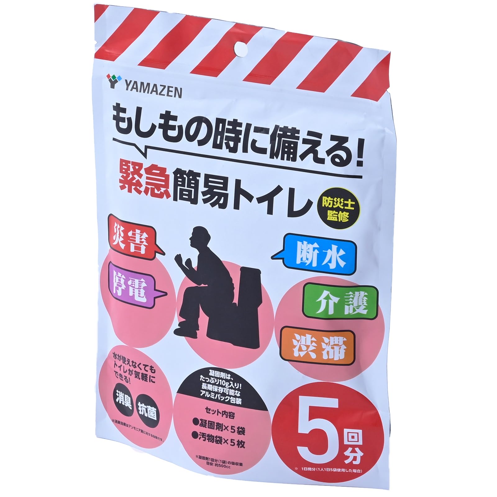 山善(YAMAZEN) 簡易トイレ 5回分 (凝固剤/汚物袋) 防災士監修 消臭 抗菌 非常用トイレ 災害用トイレ 防災 断水 介護 非常用 YAK-