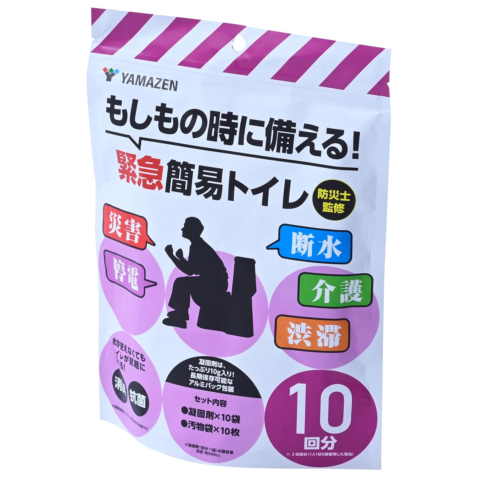 山善(YAMAZEN) 簡易トイレ 10回分 (凝固剤/汚物袋) 防災士監修 消臭 抗菌 非常用トイレ 災害用トイレ 防災 断水 介護 非常用 YAK