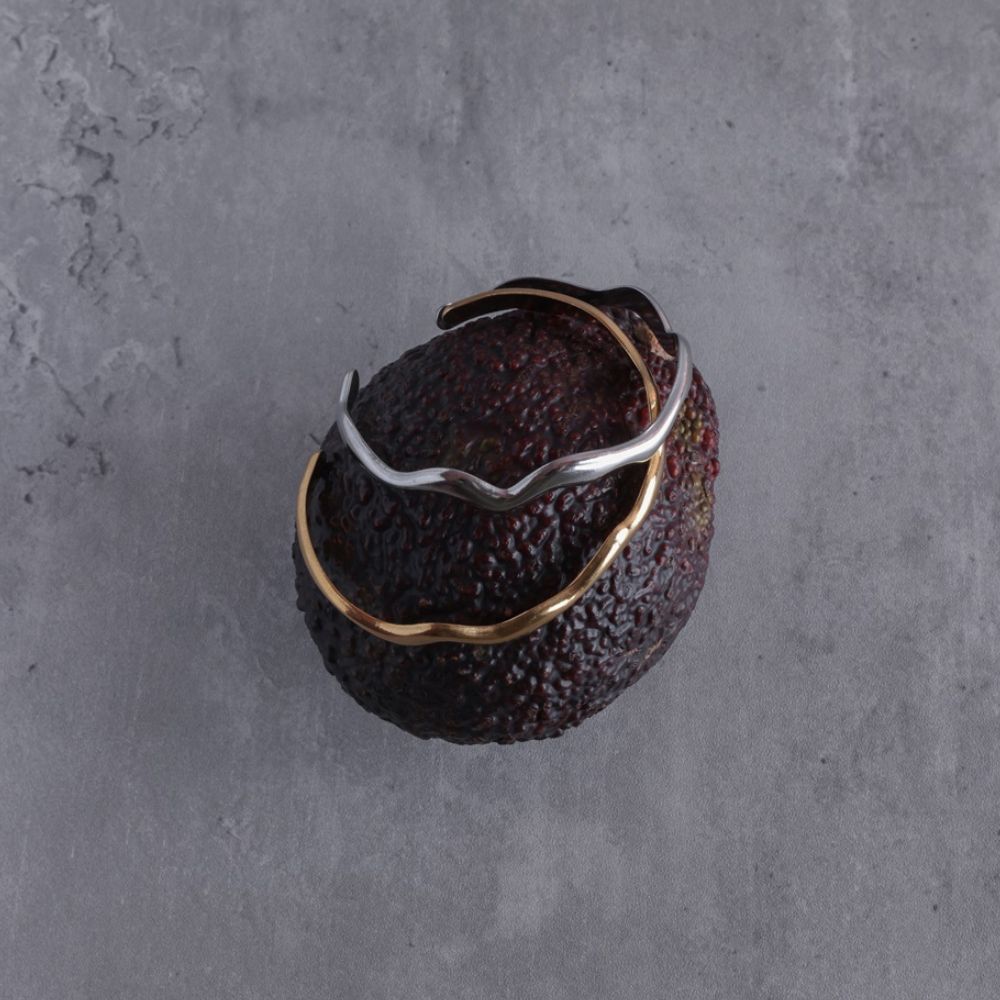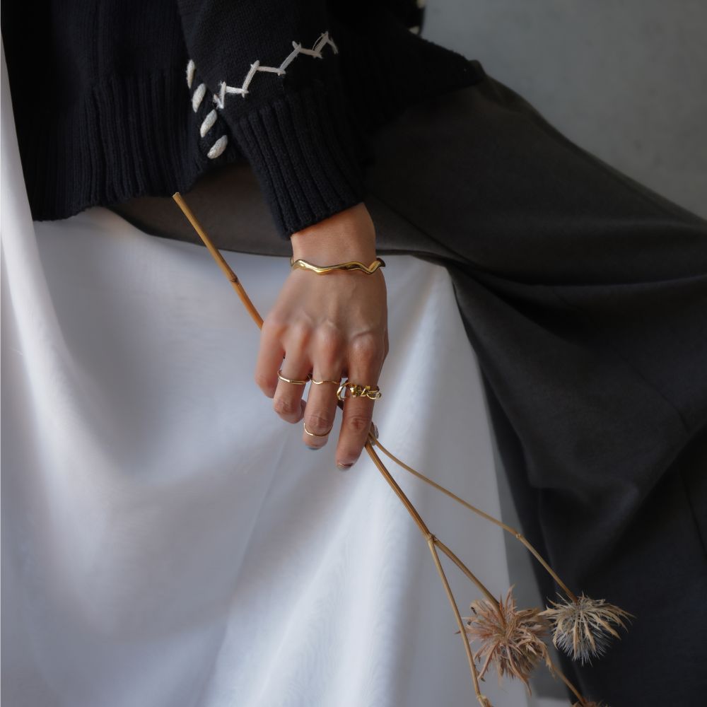 波打つラインが印象的なメタルバングル 華奢ながらさりげない存在感を放ちます