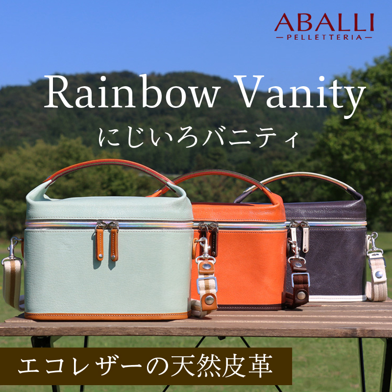 【ABALLI】にじいろバニティ 自然をテーマにしたストーリー性でJapan Leather Award を受賞した、空にかかる虹をイメージしたバニティバッグ。