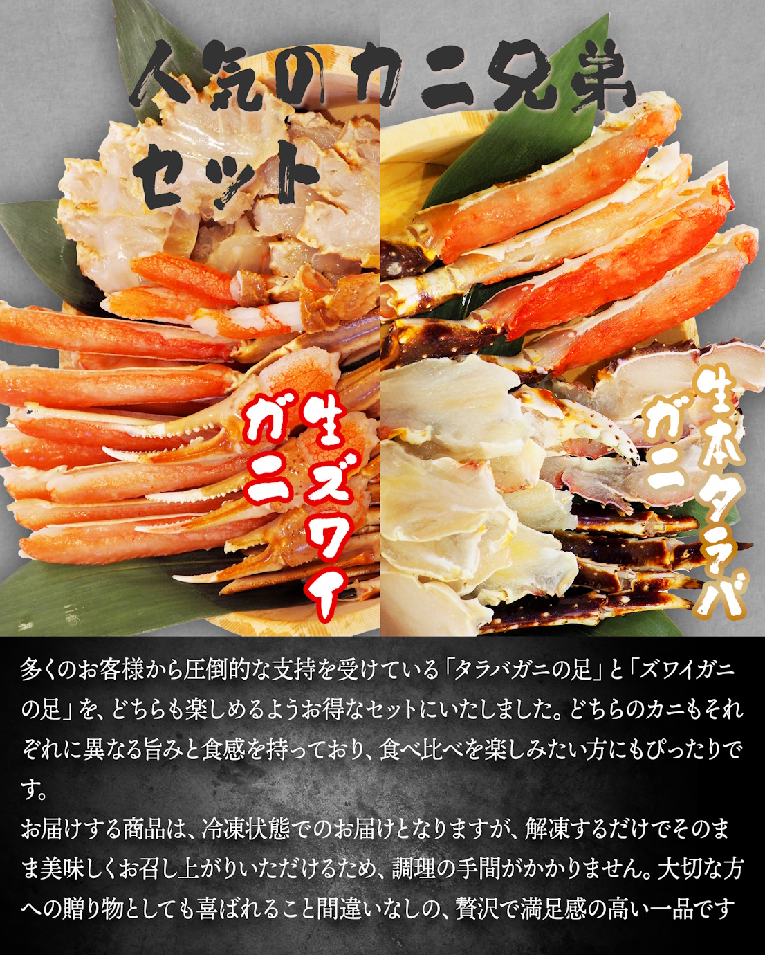 R097 人気のかに兄弟セット(タラバガニ足・ズワイガニ足・ボイル冷凍)/送料込 ギフト 贈答 プレゼント 誕生日 お祝い 爆買