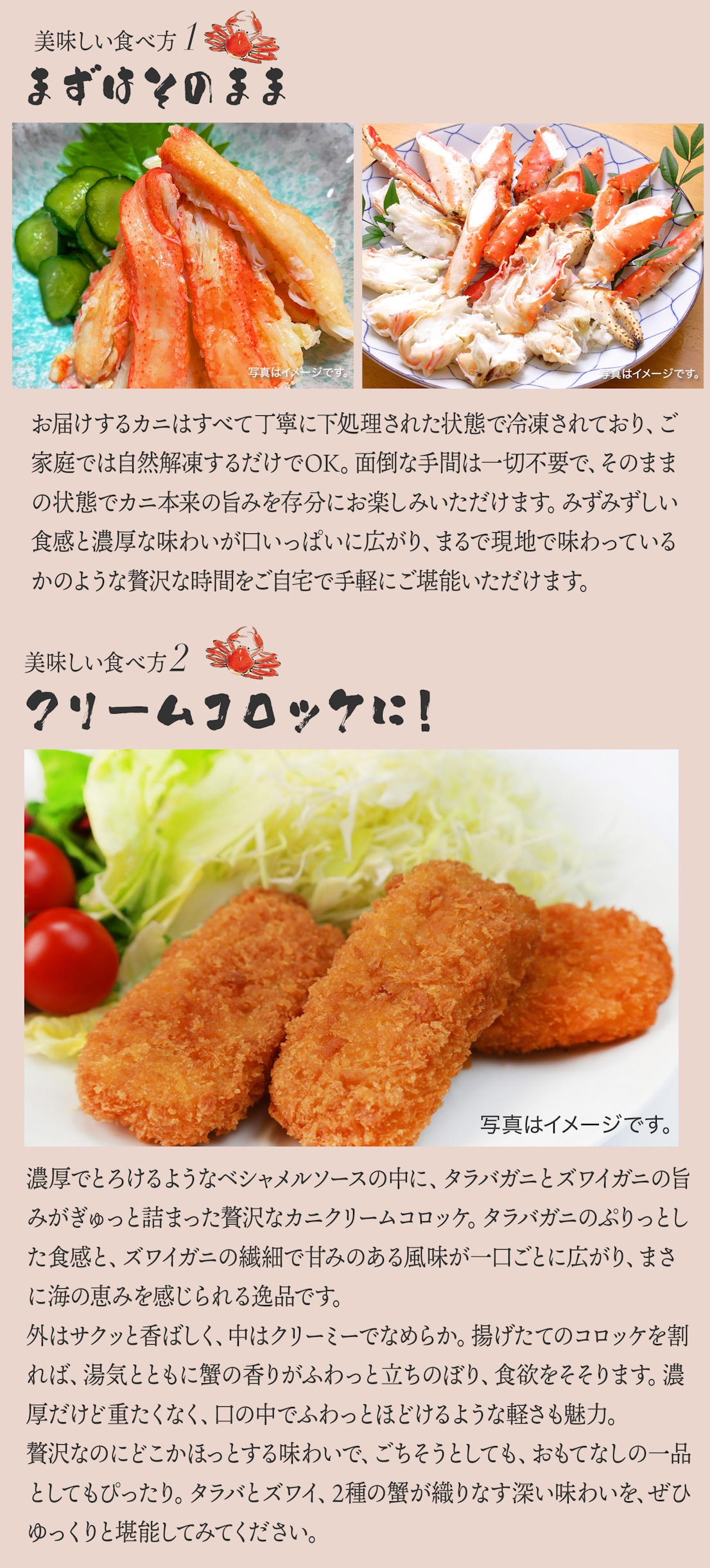 ダントツ人気の「タラバガニの足」と「ズワイガニの足」を、送料込でお求めやすくセットにしました。