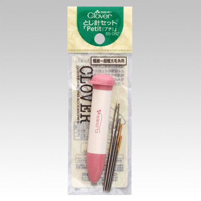 極細〜超極太毛糸用です。編み針の形をしたかわいいケースに入ったとじ針セット。