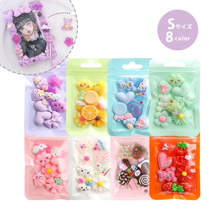 デコを華やかにする小さめのパーツが、カラー別にミックスされています。