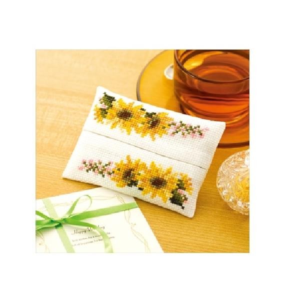 刺繍 キット オリムパス クロスステッチ 花刺しゅうの優しい小物 ティッシュケース ヒマワリ メール便/宅配便可 no-9016
