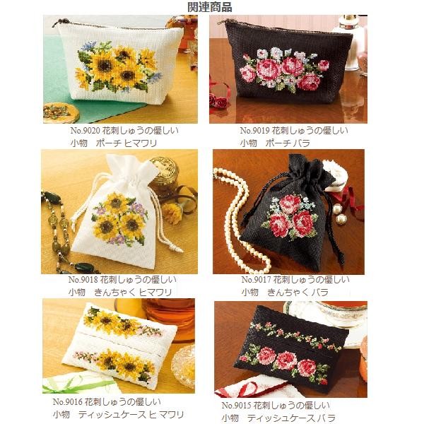 女性らしく、エレガントな表現のバラとヒマワリの刺しゅう小物シリーズは幅広く愛され、贈り物としても喜ばれます。