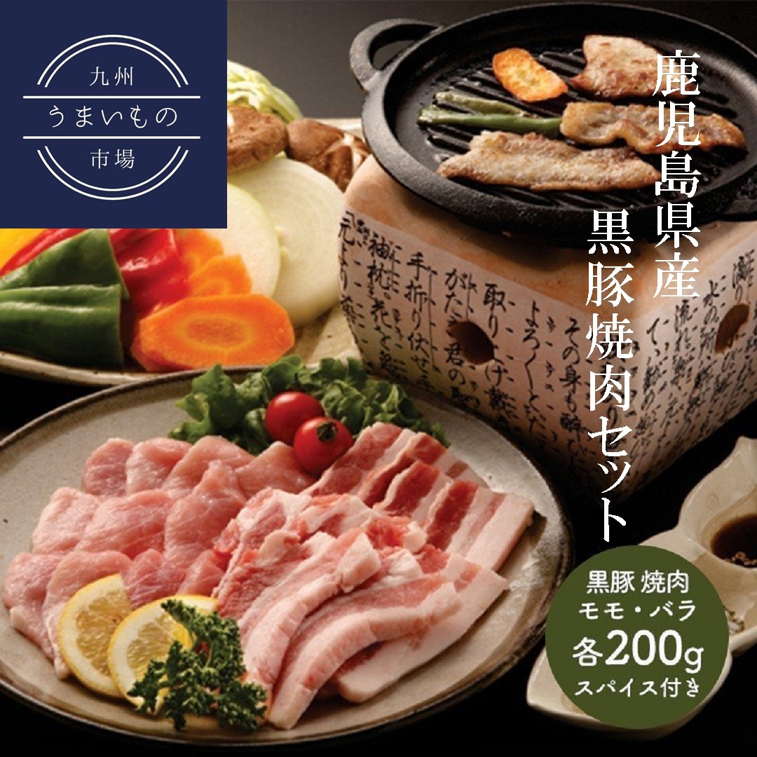 鹿児島県産 黒豚もも・バラ各200g 焼肉セット2〜3人用 バーベキュー お取り寄せ ギフト 贈り物 お中元 お歳暮