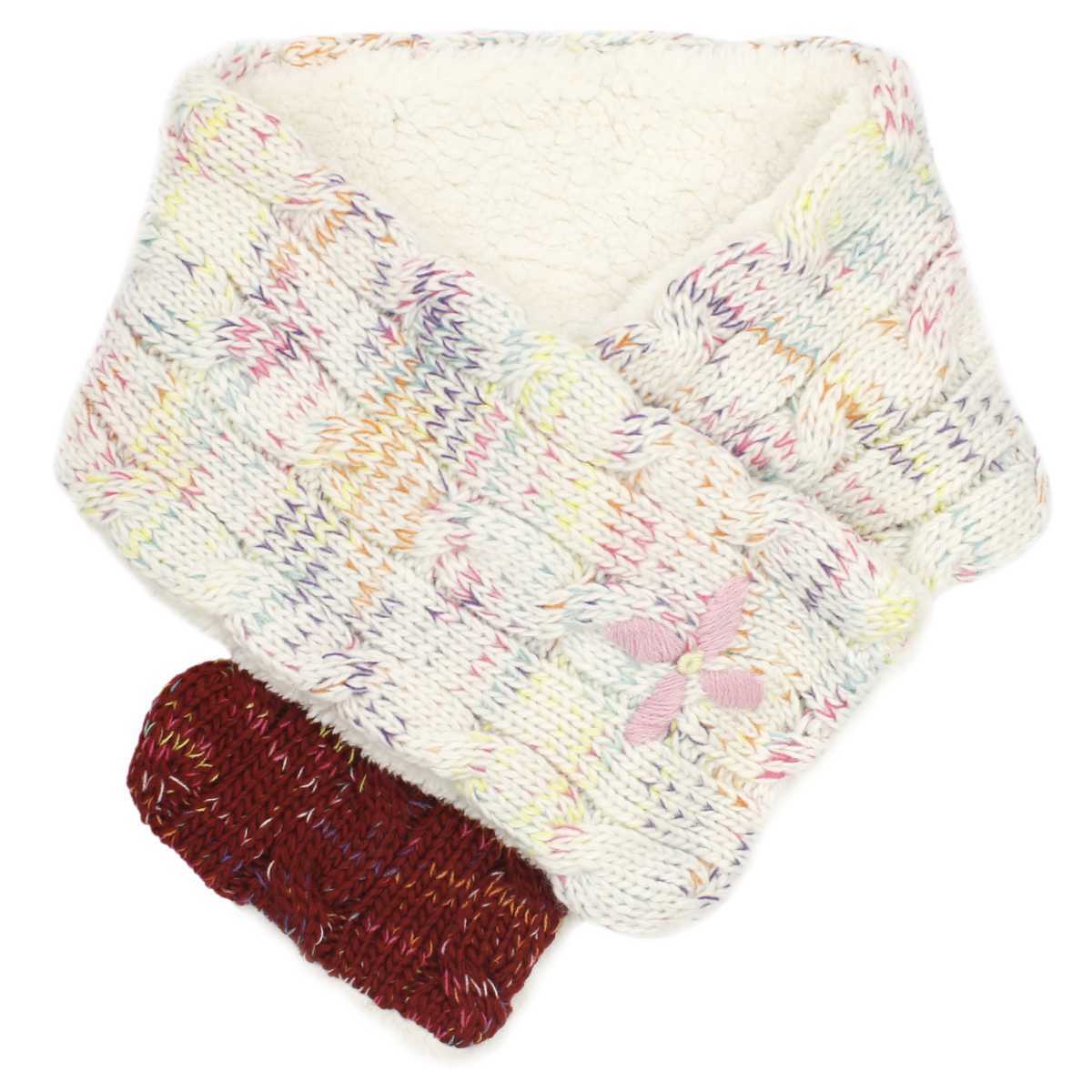 女の子・MIX 花刺繍柄・ネックウォーマー・裏ボア差し込み マフラー・防寒・子供用