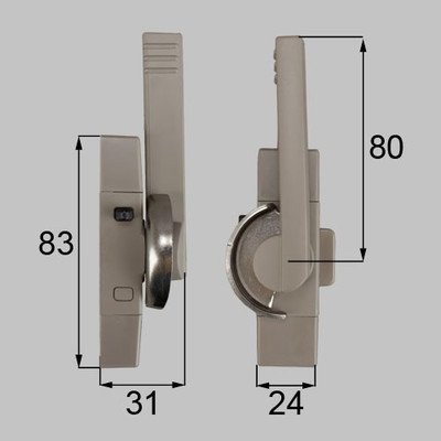 部品名 : クレセント商品コード : 8AKEY72R色 : グレー内容物 : 本体(CL1246-01FTR)x1、ねじカバー(CY2322-01FT)x2備考 : 寸法:取付ネジ穴ピッチ60ミリ、材質:金属製商品名発売時期 2005年〜アリッツ、アルプラクラス