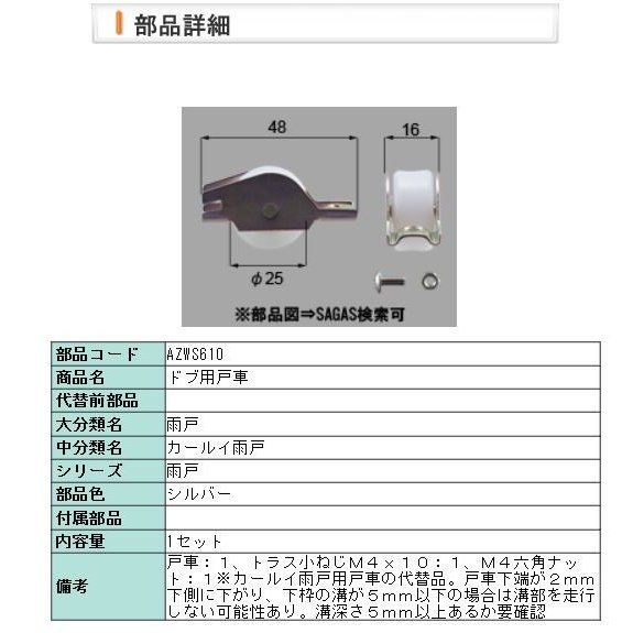 【AZWS610】 LIXIL・リクシル【旧トステム】雨戸ドブ用戸車