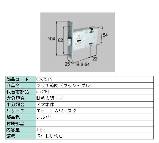 QDK751 トステム ラッチ箱錠(プッシュプル用) MIWA製 刻印 : QDK751