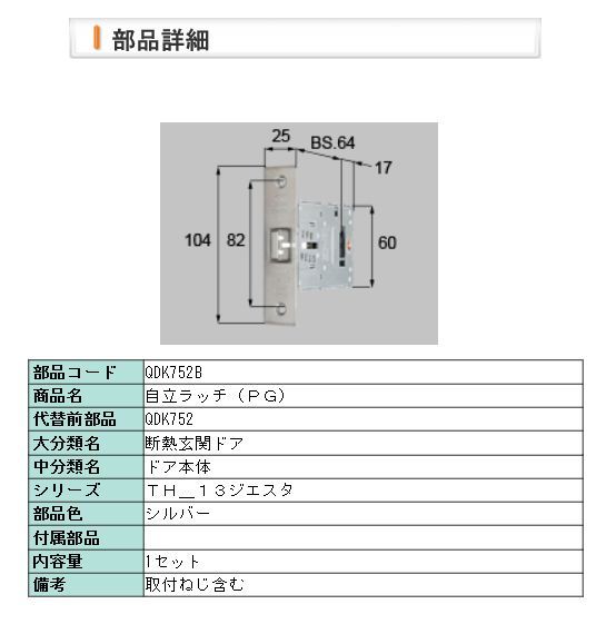 QDK752 トステム 自立ラッチ箱錠(プッシュプル用) MIWA製 刻印 : QDK752