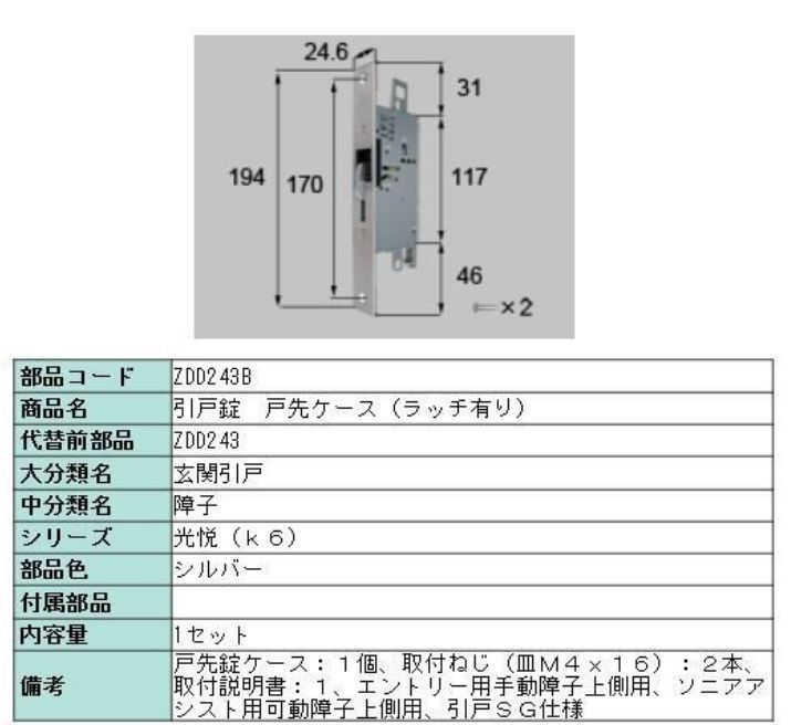 ZDD243B トステム 玄関引戸錠 戸先ケース ラッチ有り 刻印 MIWA ZDD-243B