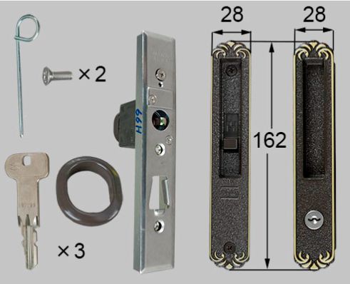 引手内外錠(ケース無)JNP485:1個、引分け外錠:1個、鍵:3本、