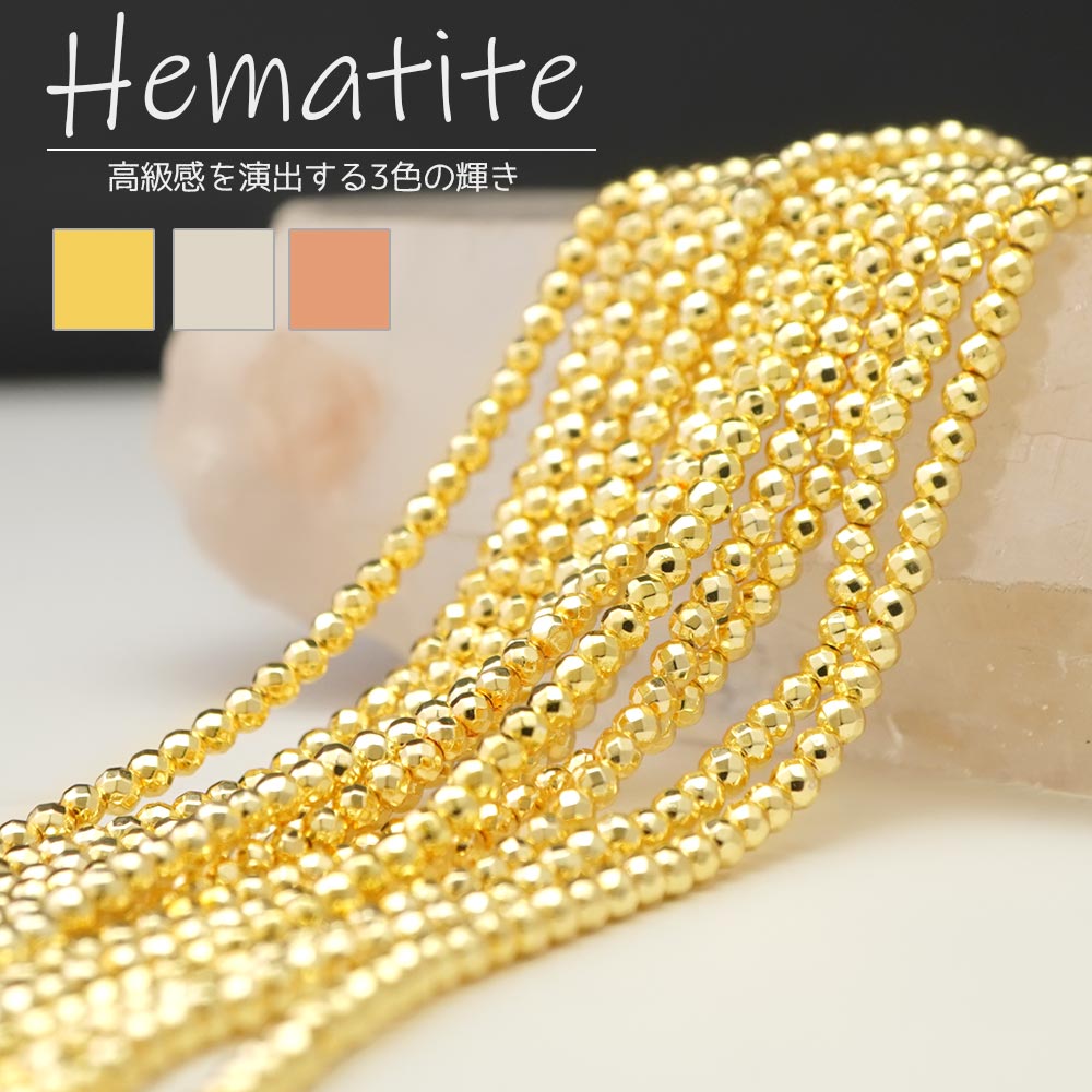ヘマタイト 選べる ゴールド シルバー ローズゴールド キラキラカット 約3mm 連売り 天然石 パワーストーン 手芸 ハンドクラフト 金 銀 パーツ 素材
