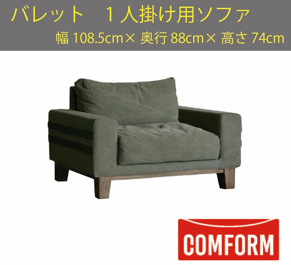 【配送設置無料】【送料無料】関家具 クラッシュ CRASH コンフォーム COMFORM バレット BARRETT ソファ SOFA ファブリック 1人掛け 1P 張地2色 キャンバスグリーン色 キャンバスダークグレー色 フルカバーリング アッシュ材脚(オイル仕上げ) 幅108.5cm×奥行88cm×高さ74cm