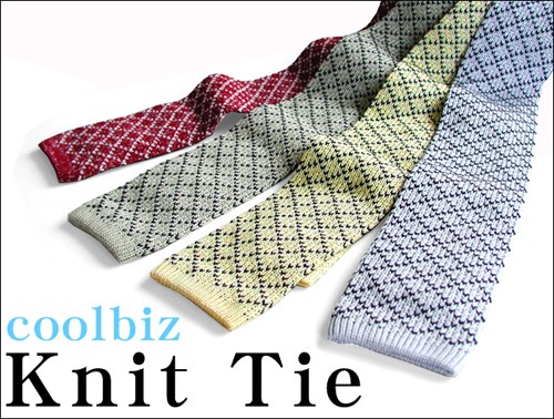 夏も涼しく襟元を飾ってくれる人気のスクエアタイプのニットタイ。差し色として使える鮮やかなレッド系やベージュ系の爽やかなクールビズニットタイです。