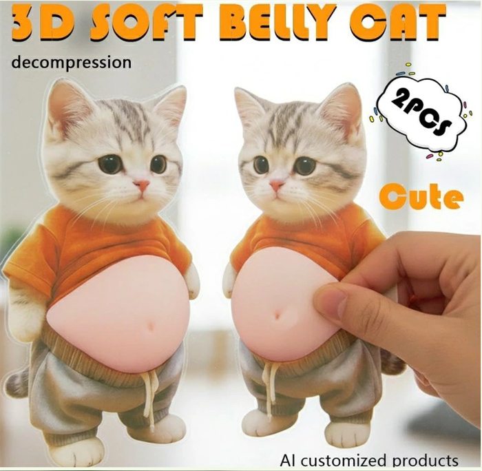 【3D 柔らかい触感 × ぷにぷく動作】デブ猫の愛らしいデザインに 3D 立体構造を採用し、マシュマロのようなふわふわ、もちもちの柔らかさを実現しております。お腹の部分を押すとぷくぷくと可愛く動き、指先で触れるたびに治愈感を感じられ、ストレス解消に最適です。