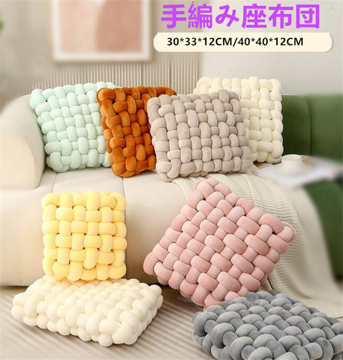 座布団 手編み座布団 クッション 手編みクッション コンパクトクッション 四角クッション ふわふわ 結び目クッション チャンキーニットクッション
