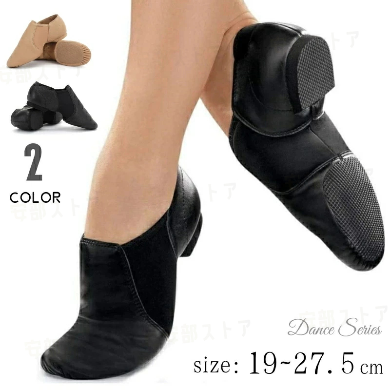 ジャズシューズ ダンスシューズ 19cm-27.5cm 大人 サイドゴム スリッポン フィット感 ブラック ベージュ