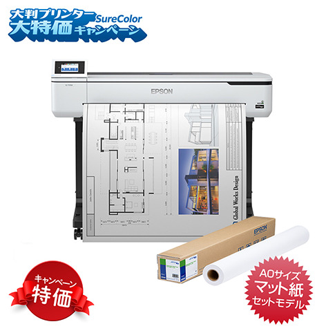 【代引不可】 EPSON エプソン A0プラス 4色 大判インクジェットプリンタ SureColor SC-T51RC3(キャンペーン型番)SC-T5150+PXマット紙ロール<薄手>