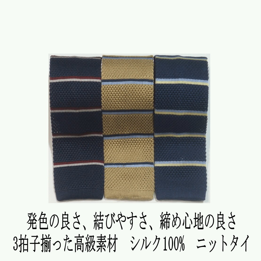 シルク100% ニットタイ ボーダー柄 クールビズ ナロータイ メンズ 正絹 ネクタイ 絹100% ネイビー ベージュ 送料無料