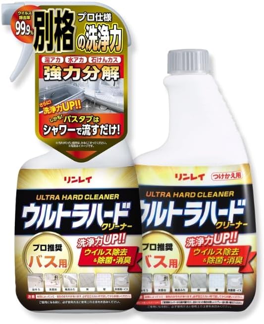 【頑固な汚れを強力除去】リンレイのウルトラハードクリーナーは、バスルームの頑固な汚れを強力に落とすプロ仕様。水垢やカビ、石鹸カスも一掃し、浴室をピカピカに保ちます。