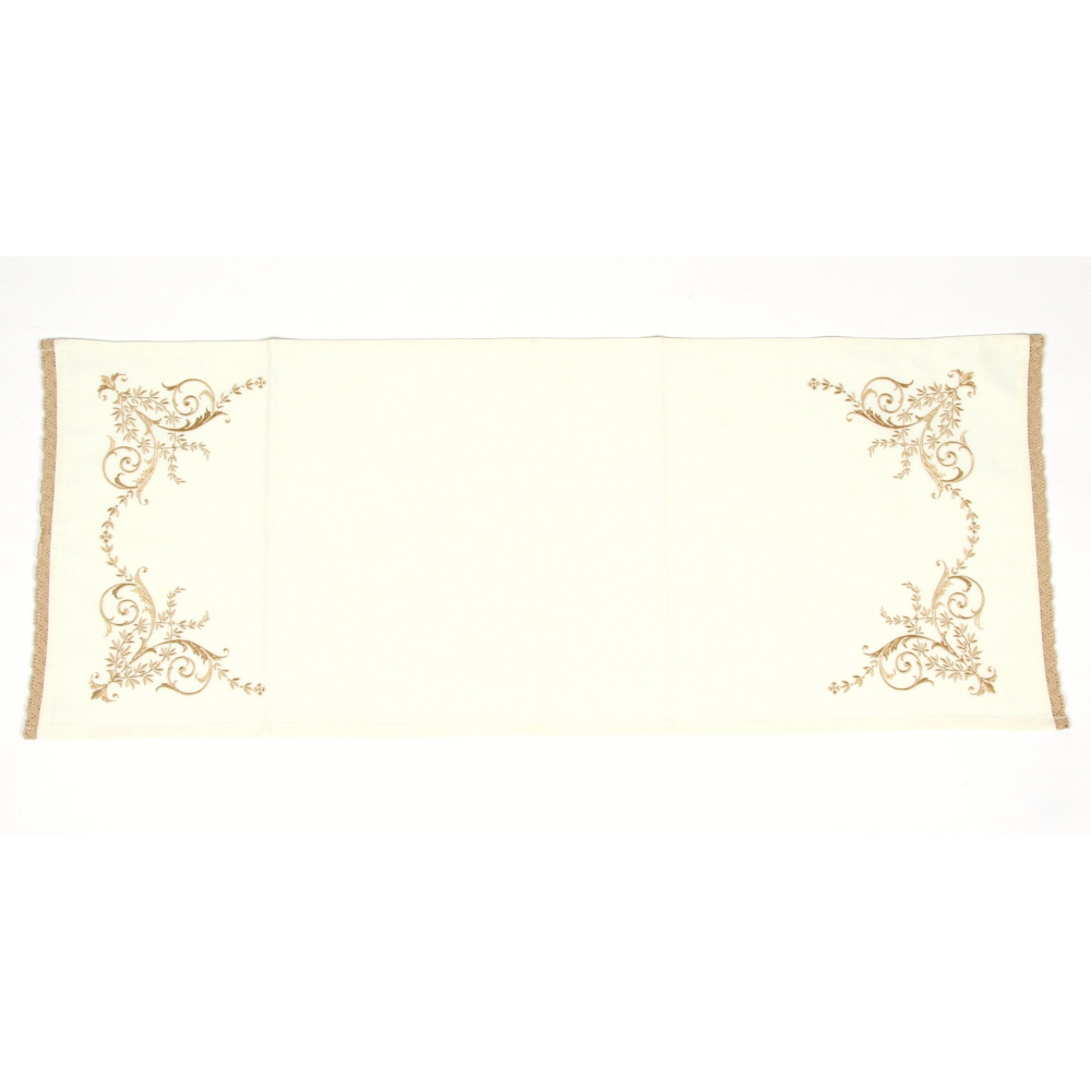コットンレーストリム付きテーブルランナー