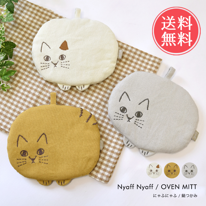Nyaff Nyaff にゃふにゃふ 鍋つかみ 鍋つかみ ミトン ループ付き 鍋敷き マット 猫 ネコ アニマル 動物 メール便送料無料