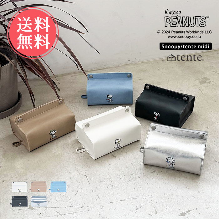 PEANUTS ティッシュカバー tente midi ハーフサイズ 小さめ ティッシュケース スヌーピー おしゃれ メール便送料無料