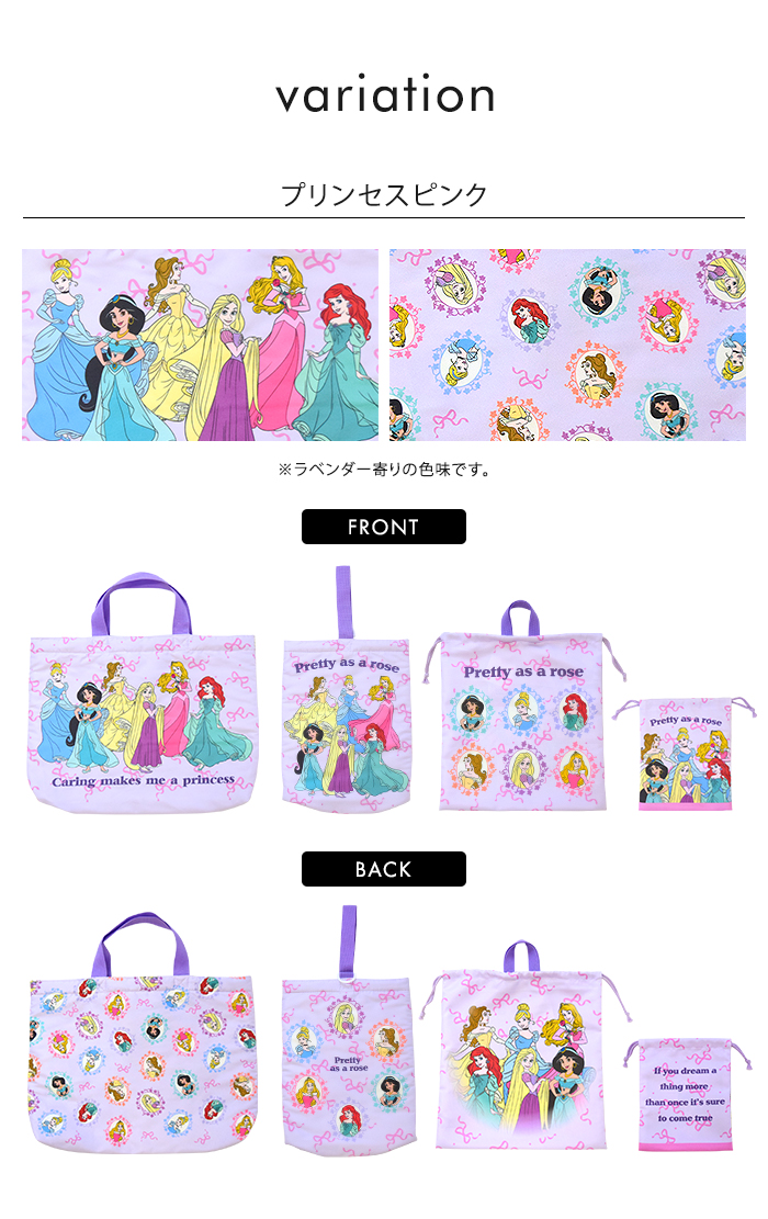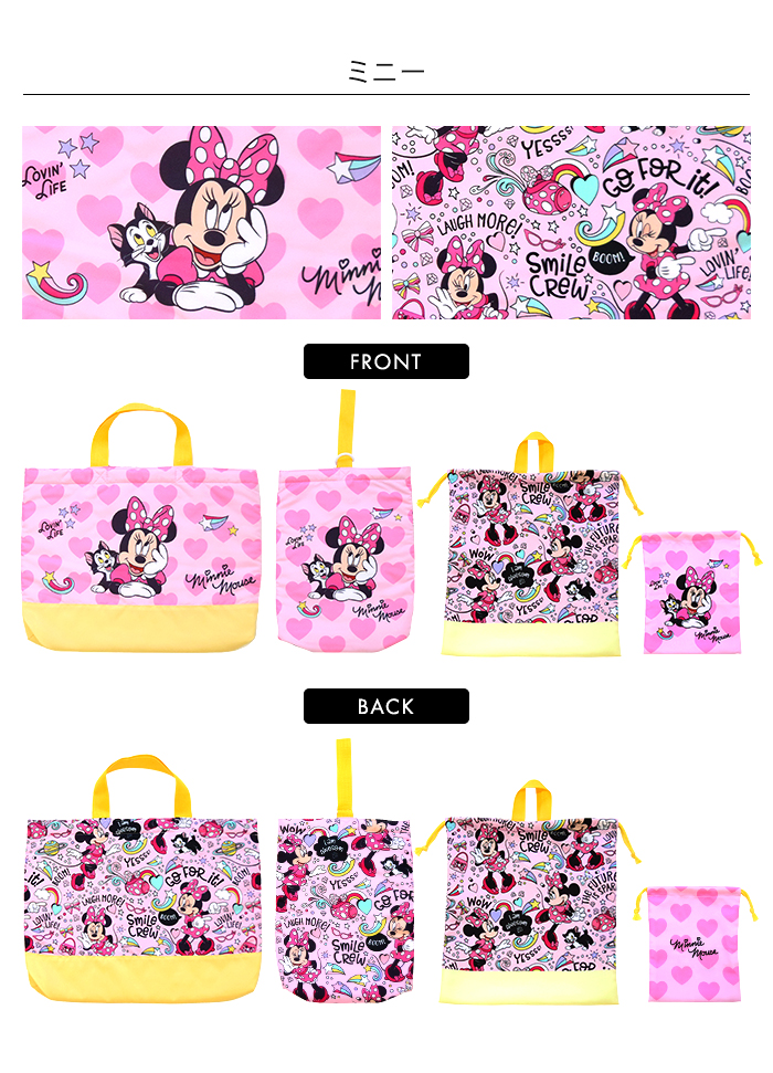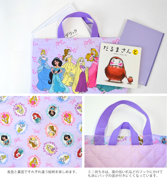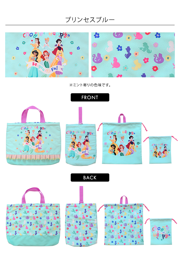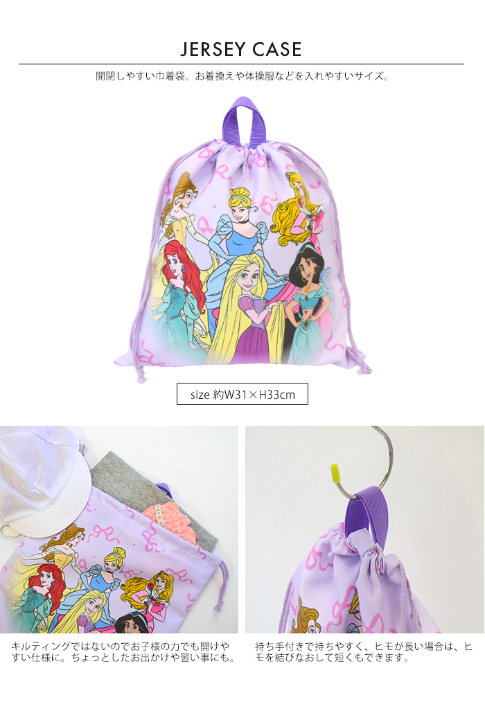 学校や習い事に使用できるベーシックなキルティングトートバッグ。園や学校の上靴・上履きのキルティングシューズケース。開閉しやすい巾着のジャージケースは、お着換えや体操服などを入れやすいサイズ。小物やコップの収納可能なミニ巾着。入園・入学時に必要な収納バッグがそろった4点セット。女の子には可愛いディズニープリンセスやミニーたち、男の子にはカッコいいカーズーやミッキー柄で、毎日の通園・通学が楽しくなりそう。全て同じ柄で揃える事で、お子様が自分の持ち物を認識しやすくなります。