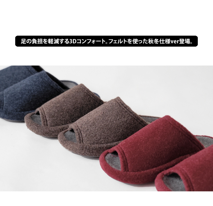 送料無料 3Dコンフォート 圧縮フェルトタイプ ルームシューズ スリッパ レディース メンズ 秋 冬 フェルトあったか
