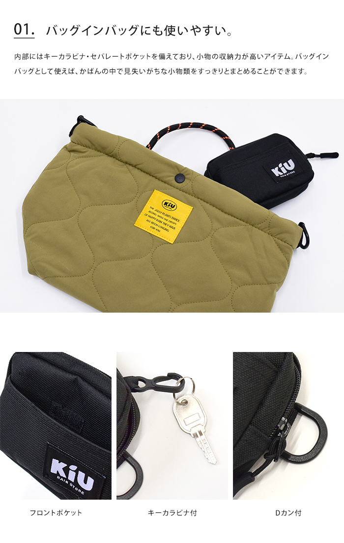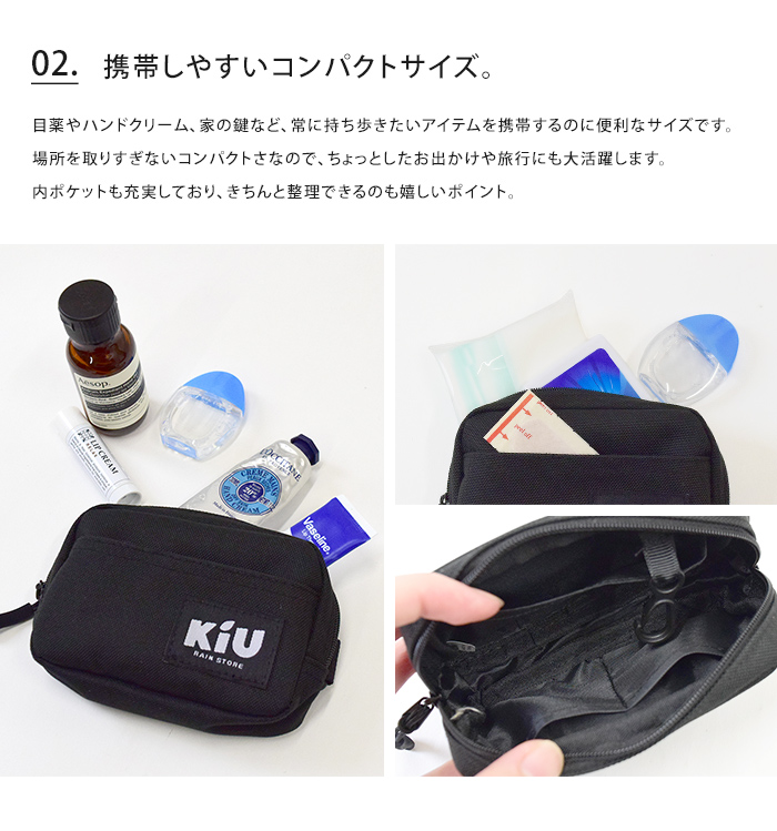 Wpc. w.p.c. KiU ウォーターリペレントポーチ ポーチ メンズ レディース マルチポーチ 小物入れ マチあり ポケット 小さめ 黒 総柄 メール便送料無料