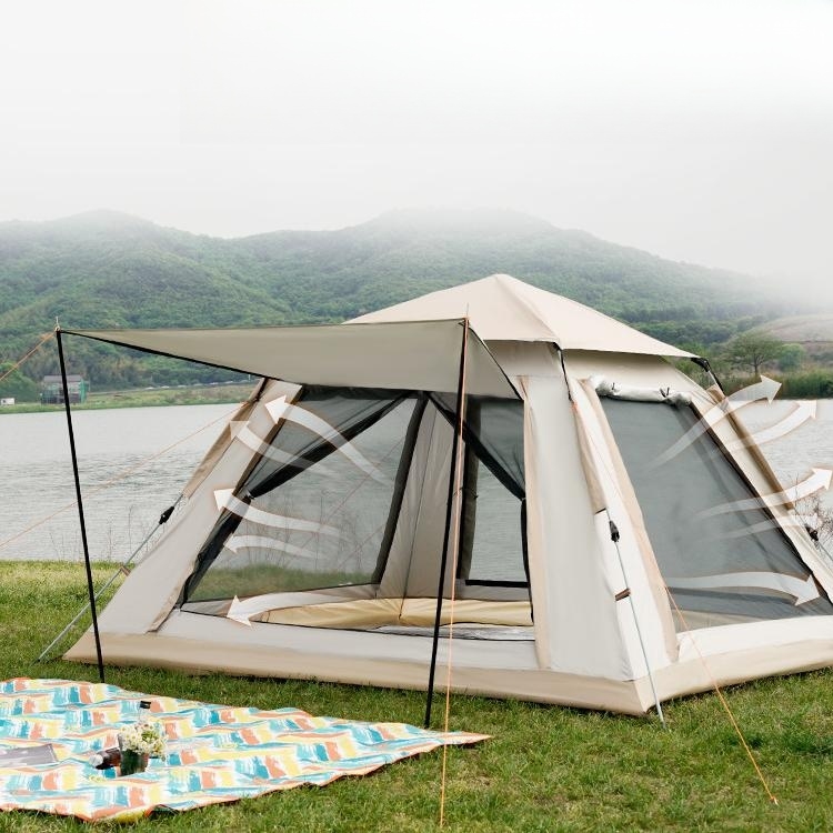 テント ワンタッチテント ワンタッチ式 キャンプ 簡単設営 窓口あり 通気性抜群 メッシュ付き 210D 二重防水 防風 UVカット UPF50+ 3~4人用テント