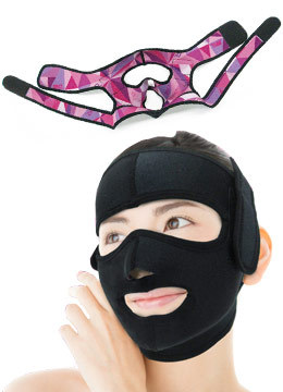 - 顔の前面を覆い、フェイスラインに沿って下から上へ引き上げて固定し、ウォーム&ストレッチ。