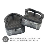 【ソールにもこだわりが】・TPR素材ゴムのような手触りで、摩擦に強く、滑りにくいのが特徴。スポーツシューズの底材として幅広く使われる素材です・アウトソールデザインは日本の伝統文様矢羽根をモチーフにした日本で古くから使われている矢絣【やがすり】柄のソール矢絣【やがすり】とは縁起の良い柄で、魔除けとして邪気を払う意味も込められています。雪駄はソール部分が薄く平たいものが多いですが、ほどよい厚底(約4cm)デザインでスタイルアップ!