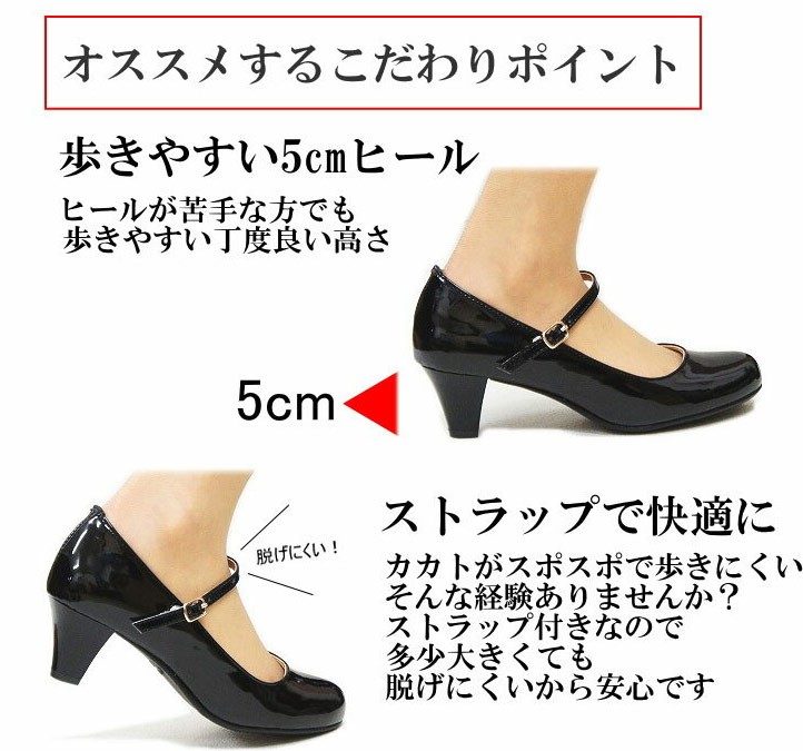 パンプス ストラップ 痛くない 歩きやすい ローヒール 結婚式 オフィス 黒 脱げない ブラック BLACK 5cm 入学式 入園式 卒業式 卒園式 Pumps sm1603