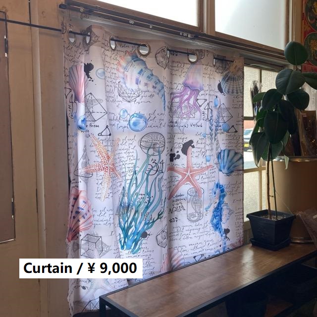TOPANGA Fabric マリンドリームカーテン 135×115cm インテリア カーテン タツノオトシゴ ソファ カーテンポール カフェカーテン