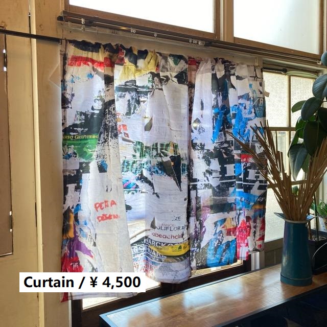 ウォールアートみたいなグラフィックデザインのカーテン。