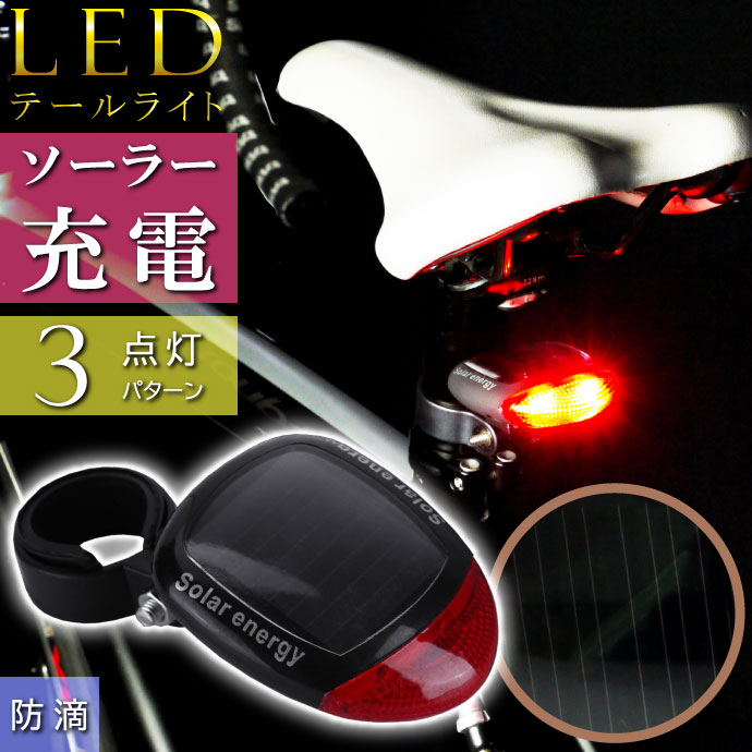 ソーラー充電LEDライト 電池不要自転車テールライト自転車LEDライト 夜間安全 テールランプ 衝突予防 as20016