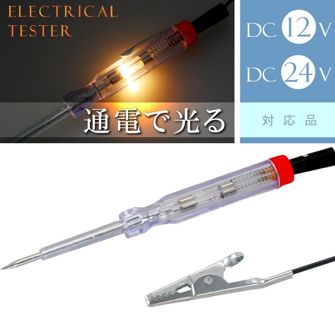 検電テスター 通電時にランプが光る DC12V DC24V対応 導通 断線 通電のチェック ペン型 軽量 コンパクト設計 as1320