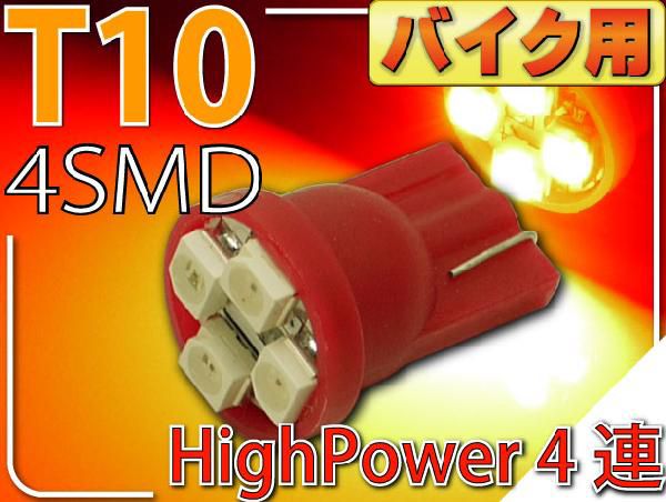 バイク用T10 LEDバルブ4連レッド1個 高輝度SMD T10 LED バルブ 明るいT10 LED バルブ ウェッジ球 T10 LEDバルブ as423