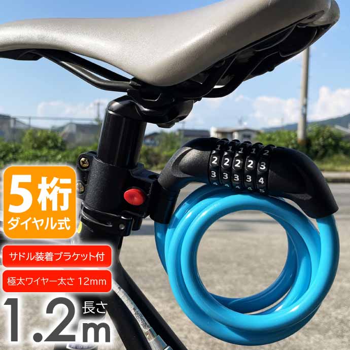 ワイヤーロック 自転車 鍵 ダイヤル式 5桁 1.2m ブルー ダイヤルロック ブラケット付 盗難防止 防犯 セキュリティ 施錠 Rk461