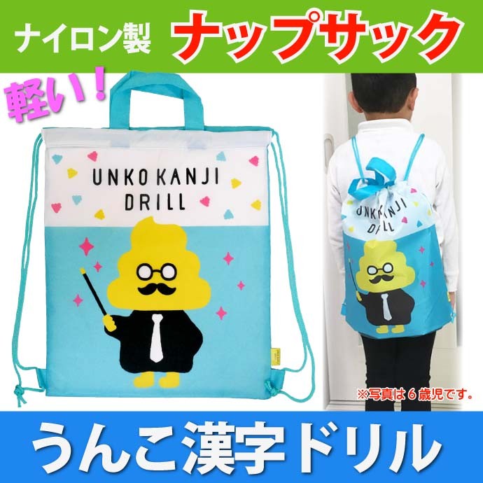うんこ漢字ドリル ナップサック お子様のかばん キャラクターグッズ リュック バッグ 勉強文具 おかし ゲームカセット入れ Un167