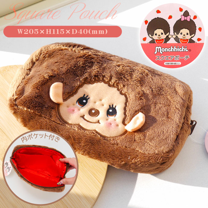 モンチッチ フェイスデザインの 角型 ポーチ。