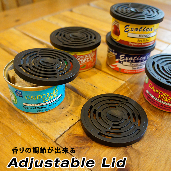 缶型 フタ ふた 蓋 キャップ アジャスタブル アジャスター 調節 缶用 芳香剤 香り長持ち エアフレッシュナー 缶 置き型 adjustble lid USA America アメリカ雑貨 おしゃれ オシャレ かっこいい 車 カー用品 センス 調整 カリフォルニアセンツ リトルツリー エキゾチカ