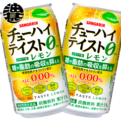 『2ケース送料無料!』(地域限定)サンガリア チューハイテイスト レモン Alc.0.00% 350g缶×48本【ノンアルコールチューハイ レモン 機能性表示食品】/sg/