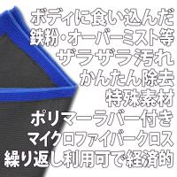 - 自動車塗装面に付いた、鉄粉・オーバーミスト・タール・ピッチなどを素早くクリアに取り除く、特殊吸着ポリマーラバー&マイクロファイバークロス。