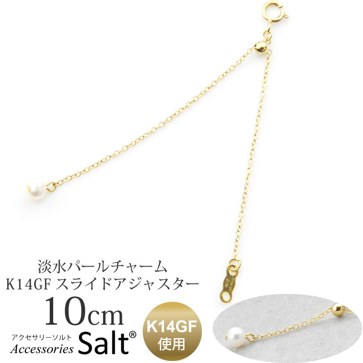 10cm スライド アジャスターチェーン パール チャーム K14GF ゴールド フィルド 延長 スライド式 金属アレルギー対応 k18 18金 等の ネックレス 用 送料無料