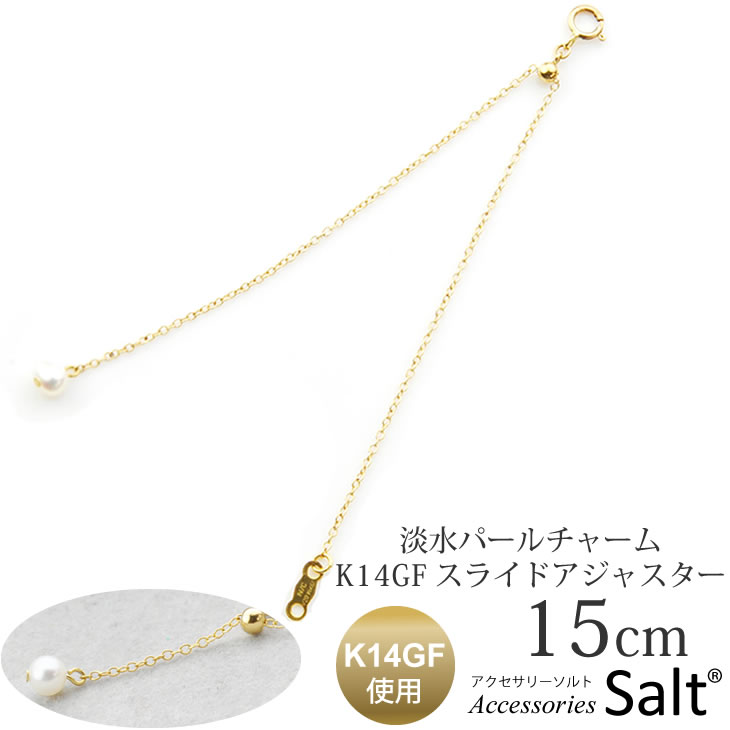 15cm スライド アジャスターチェーン パール チャーム K14GF ゴールド フィルド 延長 チェーン 金属アレルギー対応 k18k 18金 等ネックレス 調節 金具 送料無料